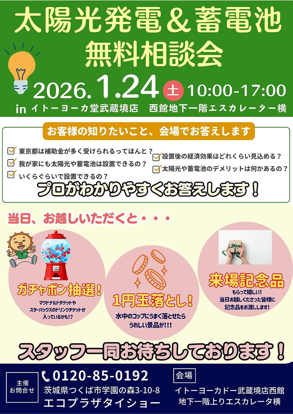 1/24(土) 太陽光発電&蓄電池 無料相談会!